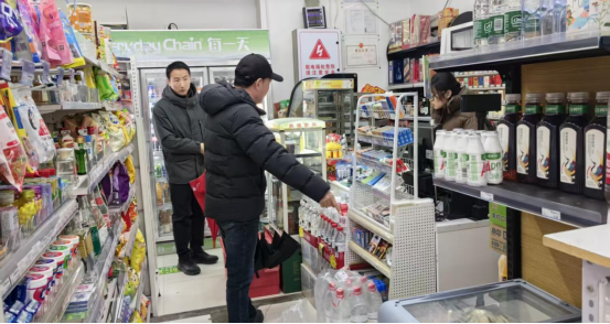 上午10时,由副校长苏文甫带队,检查组一行从鄠邑校区东体育场出发,按照既定路线依次对松林超市、东区学生食堂区域商户、综合服务一条街商户、源动力街区商户、菜鸟驿站、西区综合楼区域商户、大学生超市、图书馆阅悦咖啡等场所进行全面检查。检查组重点围绕消防安全、用电用气安全、食品安全、环境卫生及环保等关键领域展开,细致核查消防设施配置与有效性、消防通道畅通情况,重点排查私拉乱接、超负荷用电、飞线充电等违规用电行为,严格检验燃气管道阀门完好性及泄漏报警装置安装情况;同时对餐饮商户的《食品经营许可证》、从业人员健康证明、食品采购贮存加工流程、餐具清洗消毒及防蝇防鼠防尘设施进行逐一核验,同步检查物品堆放、油烟净化、排污降噪及垃圾清理等环保相关工作,特别关注新商户装修改造中出现的安全隐患。此外,检查组还查看了菜鸟驿站的运行情况,确保假期物流服务安全有序。